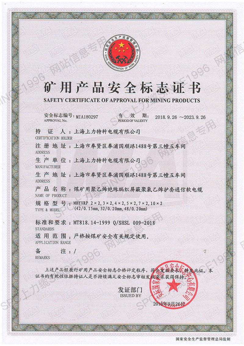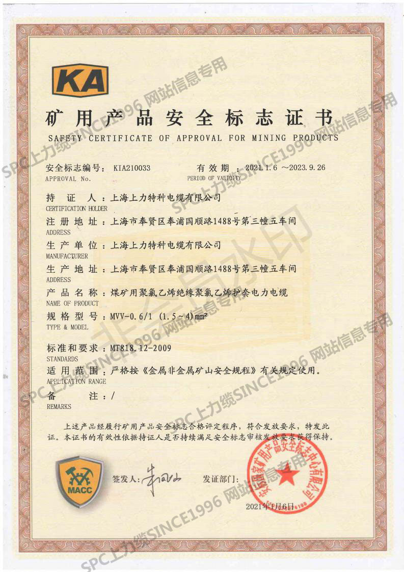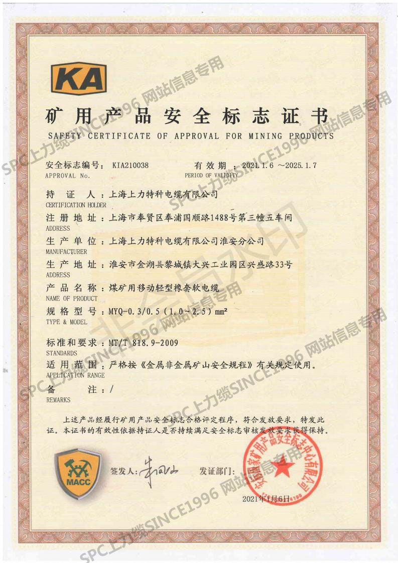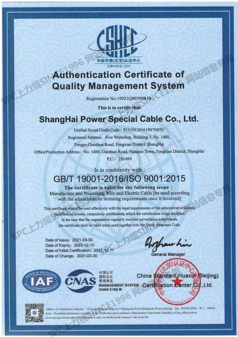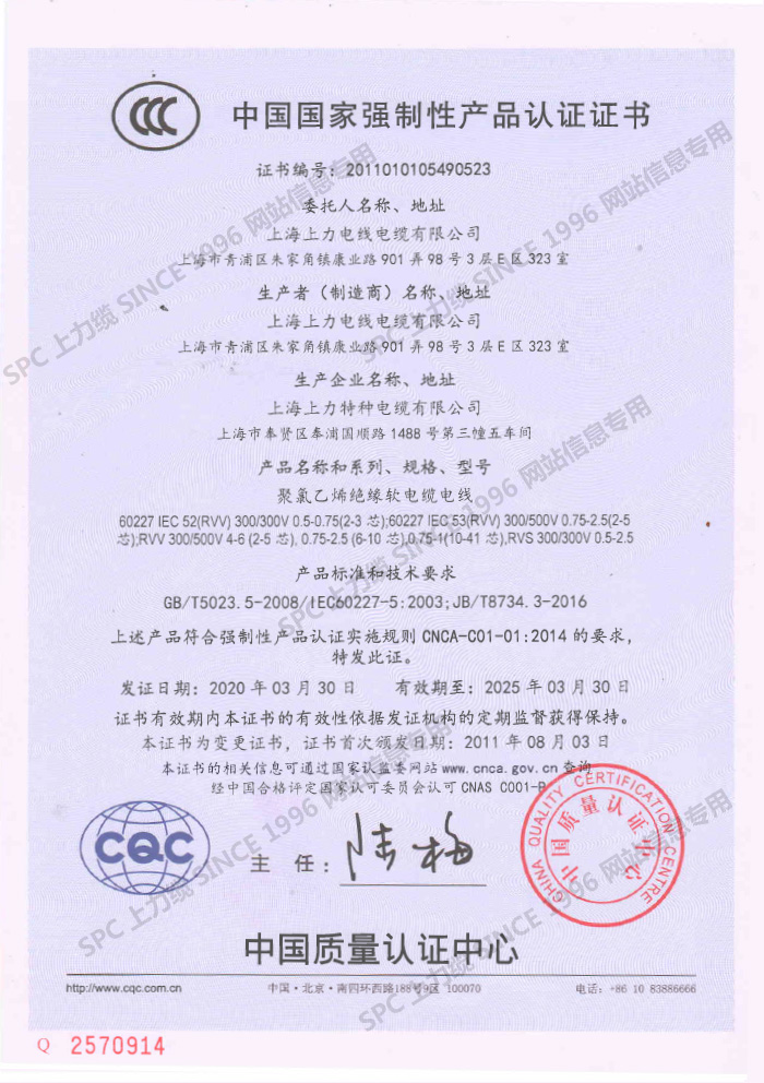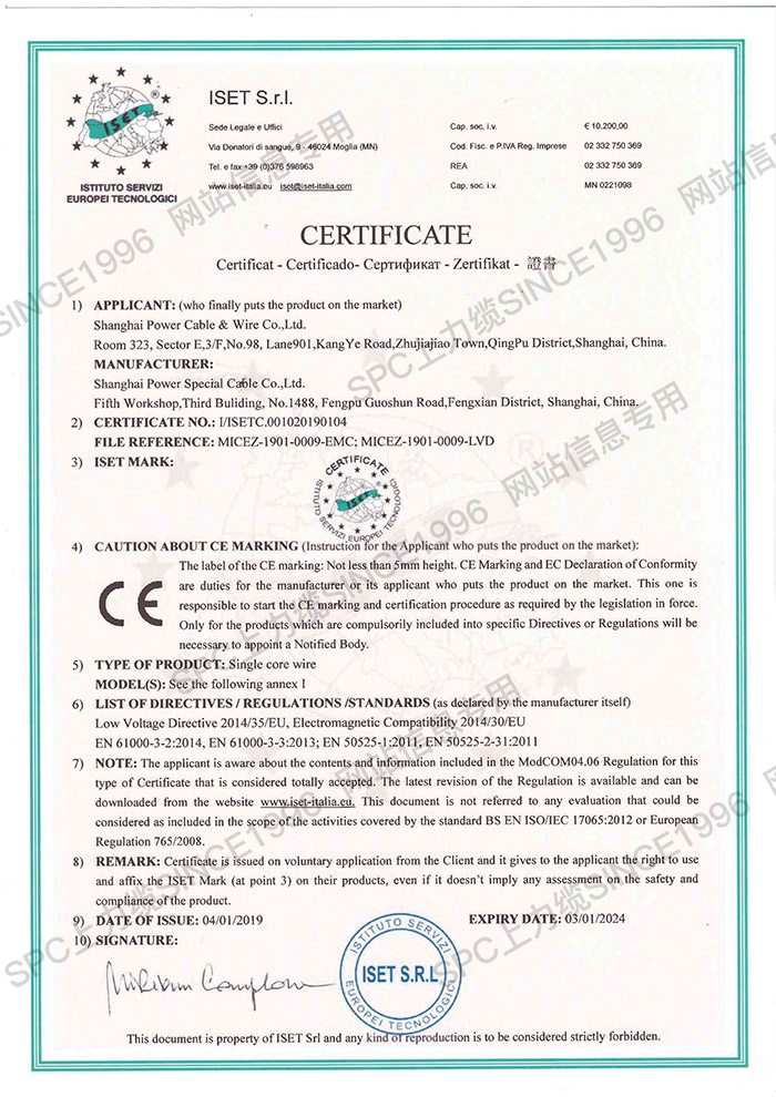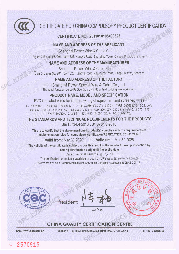 CCC證書單芯線-英文